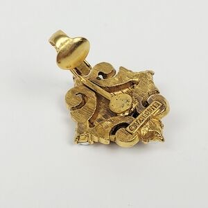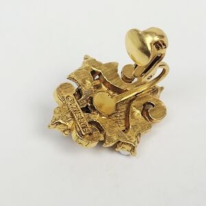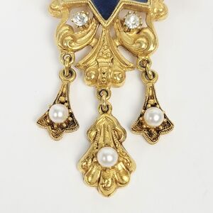 Florenza Brooch Clip-On Earring Star Blue Enamel Faux Pearl Rhinestone Victorian. Please see photos to better understand the condition and what you will receive. There are no condition issues on these very lightly used 24k gold-plated pieces. The brooch measures 3" long × 1-3/4" wide. The clip-on earings measure 1" long × 7/8" wide.