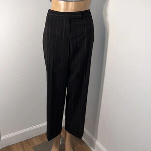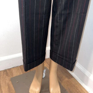 B.Moss clothing company,6P Black w/red white pinstripe pants and a cuffed hem. Button zip latch front closure ,darting throughout