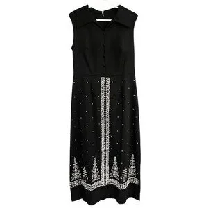 Vintage Maxi Dress Size 16-1/2 60s 70s Sleeveless Black White Stones Trees Avon