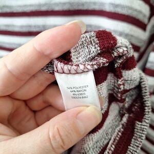 Deep red, grey, and cream colored horizontal stripes
