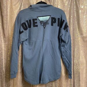 PINK Victoria’s Secret blue/gray pullover sweater, size XS, shoulder logos