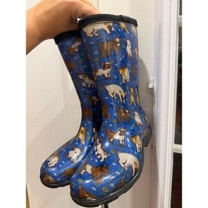 SLOGGER Womens Size 6 Blue Goat Print Rain Boots Waterproof Garden Whimsical
