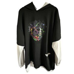 Make a bold statement with this edgy oversized hoodie featuring a vibrant skull graphic.