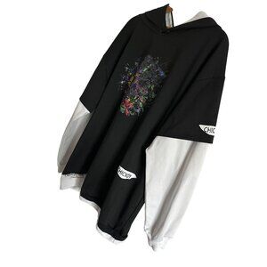 Graffiti Skull Hoodie Sweatshirt Black & White Purple Chicvoy Graphic Cotton XL