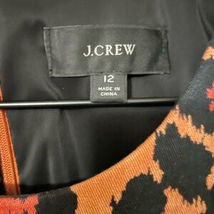 Super cute leopard print dress with fun red splashes of color from J Crew in a size 12. The cut is perfectly tailored with just the right amount of stretch to make you look your best with darts in the bust, paneling through the front and back and vents on the sleeves and bottom of the skirt. Invisible zipper closure with hook and eye and fully lined.
