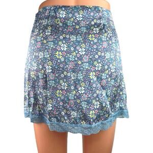 Frankies Bikinis Blue Lace Silk Satin Floral Print Mini Casual Pencil Skirt XS