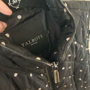 Cozy quilted Talbots Petites vest with white polka dots! Fun layering piece for the winter. Lightweight and fitted.