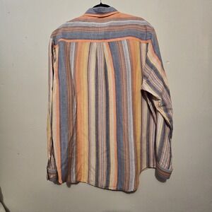 Territory Ahead Men Linen Silk Shirt LG Button Up Stripe Rainbow Colorful Summer