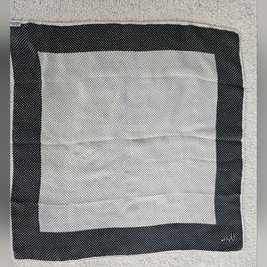 VTG VERA NEUMANN Silk Blend Navy Blue White Polka Dot Scarf | SZ 21" sq - This square scarf has tiny polka dot design, navy border with white dots, and white with navy dots in the center. This scarf is a silk blend and was made in Japan, and is from the 1950s-60s. Excellent condition - no damage