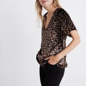 Madewell Velvet tulip sleeve ruffle top in the pattern petite blooms