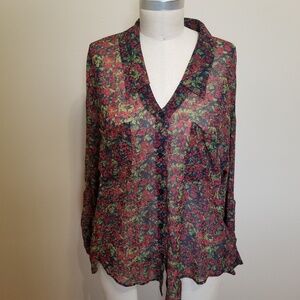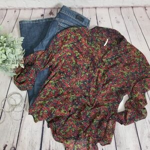 Free people sheer floral button-down shirt
