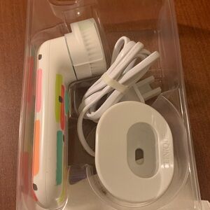 Clinique cleansing brush with a sleek handle. Features a vibrant green brush head. Never been used.