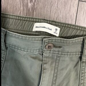 Stylish olive green cargo pants. Features multiple pockets. Perfect for casual wear.