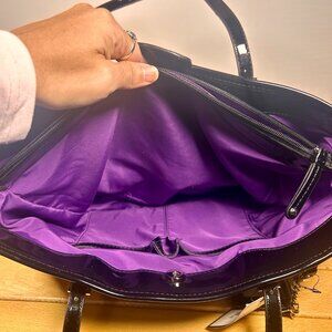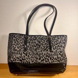 Nine West Glitter Mob Tote Purse Bag Leopard Print w/ Black Patent Trim New!