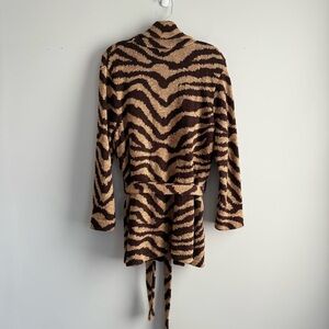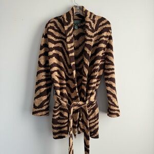 Lauren Ralph Lauren Zebra Print Linen Cotton Belt Cardigan Hand Knit Coatigan M