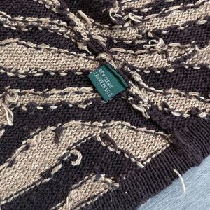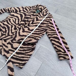 Lauren Ralph Lauren Zebra Print Hand Knit Cardigan Sweater Linen Cotton Belted Size M