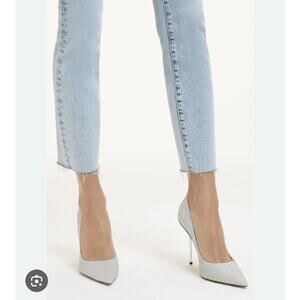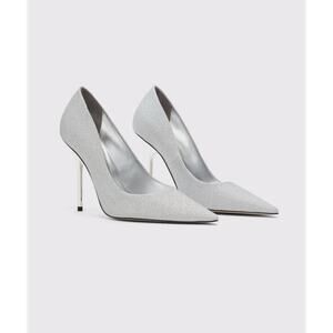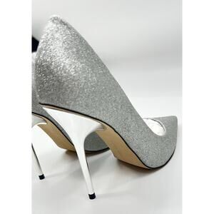 Step into statement style with these Good American Emma Silver Glitter Heels, brand new and never worn. Designed with a sleek pointed toe and elegant stiletto heel, these pumps add instant glamour to any formal or evening look.