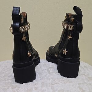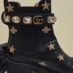 Gucci Black Boots with Gold Star and Bee Accents