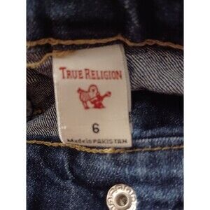 The True Religion Boys Straight Leg Jeans in size 6 are a classic and stylish choice for young boys. These jeans feature an adjustable waist for added comfort and convenience. Made from denim fabric with a medium wash, they are practical for everyday wear and easy to care for with machine washable instructions. The solid blue color and straight leg style give them a timeless appeal, perfect for various occasions like travel, casual outings, or even school. With a focus on quality and design, these True Religion jeans are a versatile wardrobe staple for boys.