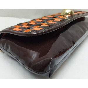 Kate Spade New York Orange Brown Patent Leather Chain Strap Hobo Shoulder Bag