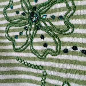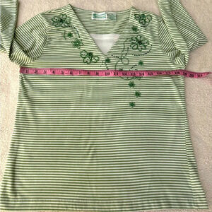 Shenanigans 6 Green & White top w/Embroidery & Sequins below a white V-neck