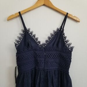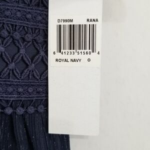 NWT Donna Morgan Royal Navy Lace Trim Midi Ruffle Dress Size 0
