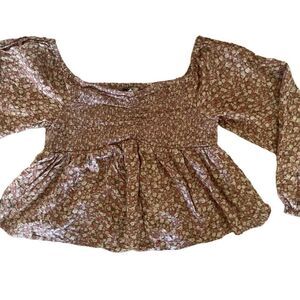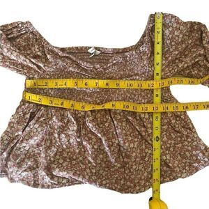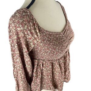 American eagle outfitters smocked floral peplum sleeve crop top blouse sz S