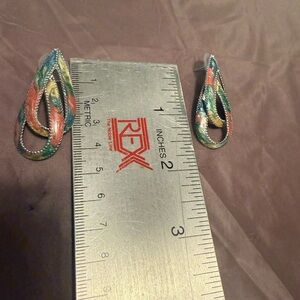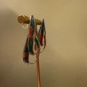 Vintage Silver/ Multicolor Enamel Double Teardrop 1.5” Drop Pierced Earrings