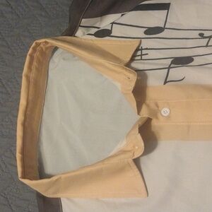 Men's Musical Note Print Shirt - Beige and Gray With Peach Strip