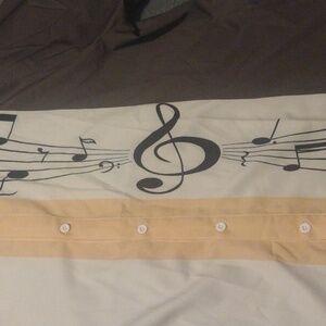 Stylish men's shirt featuring a unique musical note print. Crafted in a blend of beige and gray colors, this shirt offers a modern and artistic look. Perfect for music lovers and fashion enthusiasts alike.