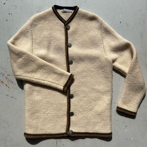 Men's Vintage Handarbeit Cardigan Sweater Multicolor M Germany 60s Grandpa Knit. Wool blend. Tight knit. Insignia button. Made in Germany. Heavyweight. Rare.