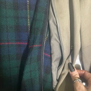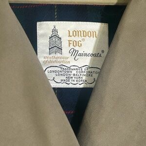 London Fog Classic Removable Thick Plaid Zipper Liner Tan Trench Coat