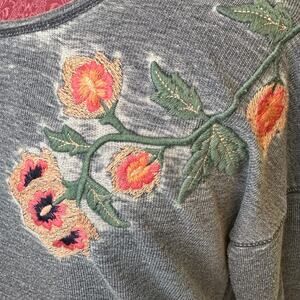 Lucky Brand Blue Distressed Sweater with‎ Beautiful Embroidered Flowers Size S