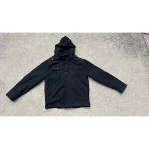 North Zone Jacket Men Size Large Black Hooded Full Zip Button Snap Pockets