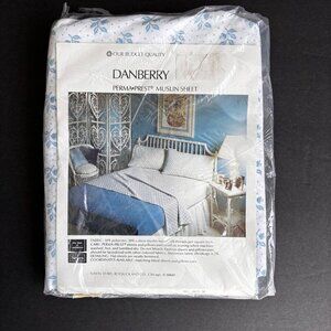 This vintage Danberry twin flat sheet features a charming blue floral pattern.