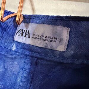 Zara Size 2 Blue Denim Shorts Jeans Tie Dyed Distressed Hot Fringe Tied Dye OOAK