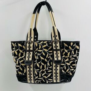 Isabella Fiore Vintage Beaded Embroidered Canvas Leather Purse Bag, Black/Cream