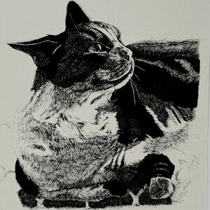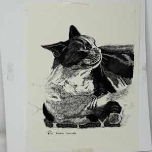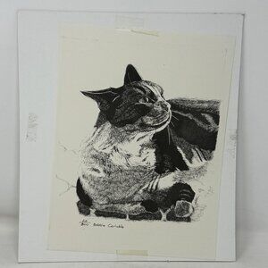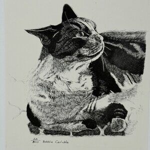 Limited Edition Bobbie Cericola Cat Pen Art Print 25/300 Black White Signed 9x12