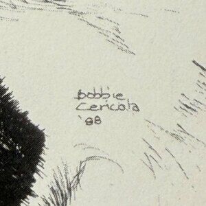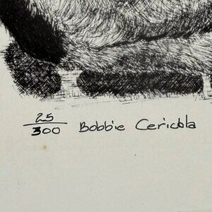 This limited edition print by Bobbie Cericola features a detailed black and white illustration of a cat. Signed and numbered, it’s an excellent choice for collectors.