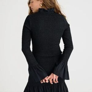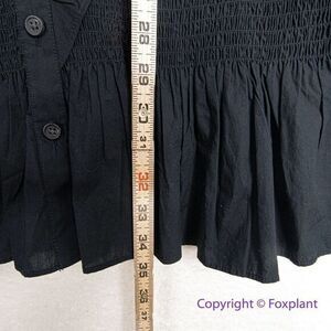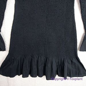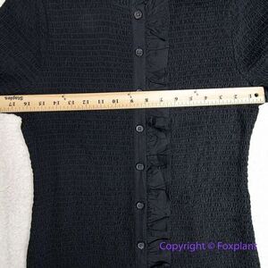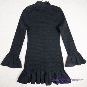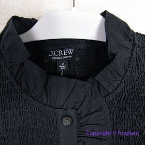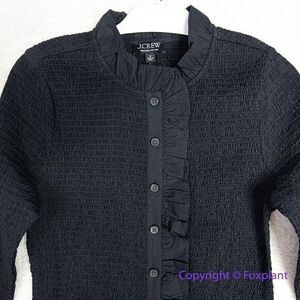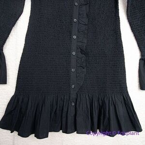 NEW J CREW SMOCKED LG SLEEVE BUTTON UP RUFFLE MINI DRESS black, M