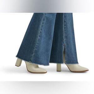 Love a good flare! These have a raw hem and a split detail at hem. Good stretch! Waist 14, rise 11.5, inseam 31”. Questions? Leave a comment below!
