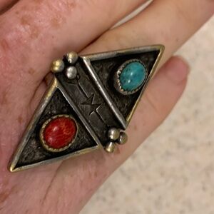 Spell gypsy two lovers brass ring 7 coral turquoise