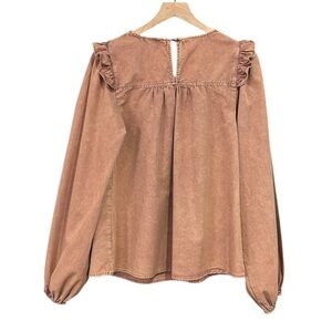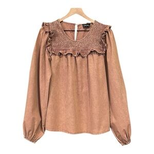 Heyson Mineral Wash Long Sleeve Smocked Neck Top Women’s Size Small