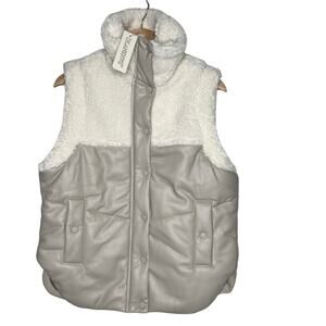 BLANKNYC Vegan Leather Quilted Sherpa Vest Size: Small Color: Morning Dew (Beige/Taupe) Condition: New With Tags Smoke Free Home
