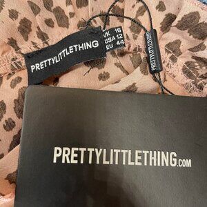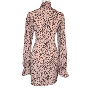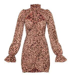 PrettyLittleThing Pink Brown Polka Dot Tie Neck Wrap Skirt Bodycon Dress Size 12