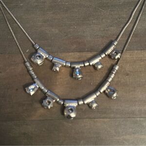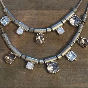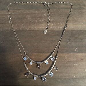 Vintage Loft gold tone layered opal and rhinestone necklace