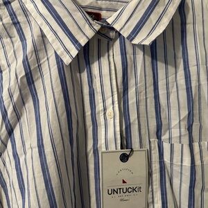 NWT UNTUCKit Pinot Perse Regular Fit Long Sleeve Blue White Blouse Size 8