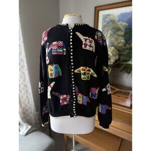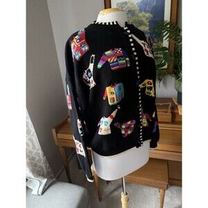 Christine Foley 90s Colorful Fun Sweater Print Cardigan, Fun Buttons Sz 3, Rare!