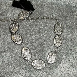 Enhance your ensemble with this stunning silver belt from Forever 21, featuring intricately designed oval links that exude elegance and style. This accessory is a perfect addition to any wardrobe, offering a sophisticated touch to your look. Its unique design ensures you make a statement wherever you go.