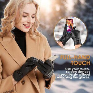 Women's Winter Leather Gloves Texting Warm Driving Lambskin Gloves Black